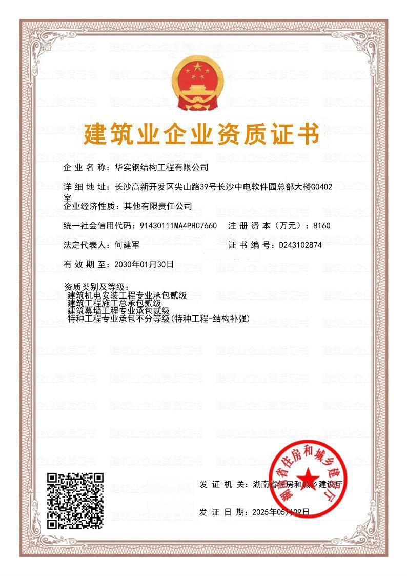 華實(shí)鋼結(jié)構(gòu)工程有限公司是華實(shí)建設(shè)集團(tuán)有限公司的專業(yè)鋼結(jié)構(gòu)子公司,鋼結(jié)構(gòu)工程廠家,公司擁有鋼結(jié)構(gòu)工程專業(yè)承包壹級(jí)資質(zhì)、建筑工程施工總承包貳級(jí)資質(zhì)等建筑資質(zhì),注冊(cè)資金8160萬(wàn),公司生產(chǎn)制造基地湖南泰成鋼結(jié)構(gòu)有限公司,坐落于寧鄉(xiāng)市大成橋工業(yè)園,自成立以來(lái)一直致力于鋼結(jié)構(gòu)產(chǎn)品研發(fā)、設(shè)計(jì)、制造、施工、銷售業(yè)務(wù),具備按期保質(zhì)交付客戶的全流程保障的專業(yè)實(shí)力,主要業(yè)績(jī)遍布國(guó)內(nèi)及海外市場(chǎng)。